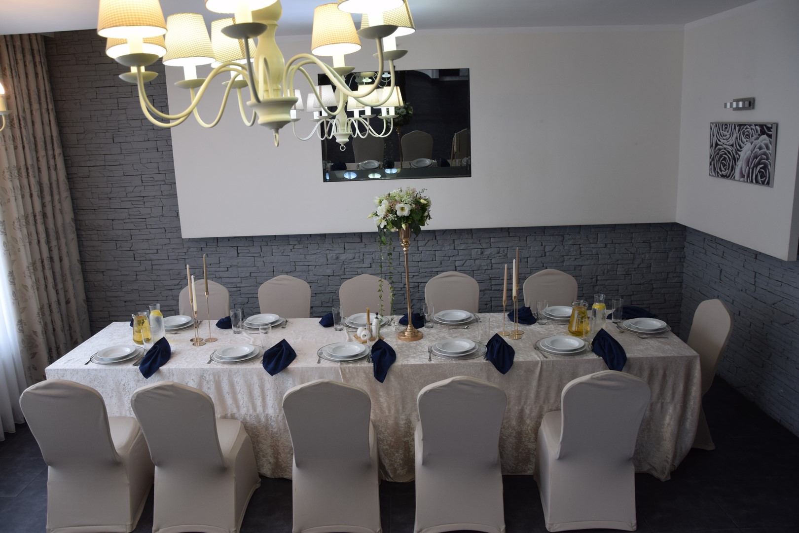 Nasze sale powstały z myślą o stworzeniu komfortowego i eleganckiego charakteru wnętrz do spotkań rodzinnych, organizacji zarówno imprez okolicznościowych jak i spotkań biznesowych, konferencji czy szkoleń. Sale w pięknym stylu są klimatyzowane, z grą świateł i wbudowanym barem do Państwa dyspozycji. Duża sala mieści do 60 osób, natomiast mała do 20 osób.